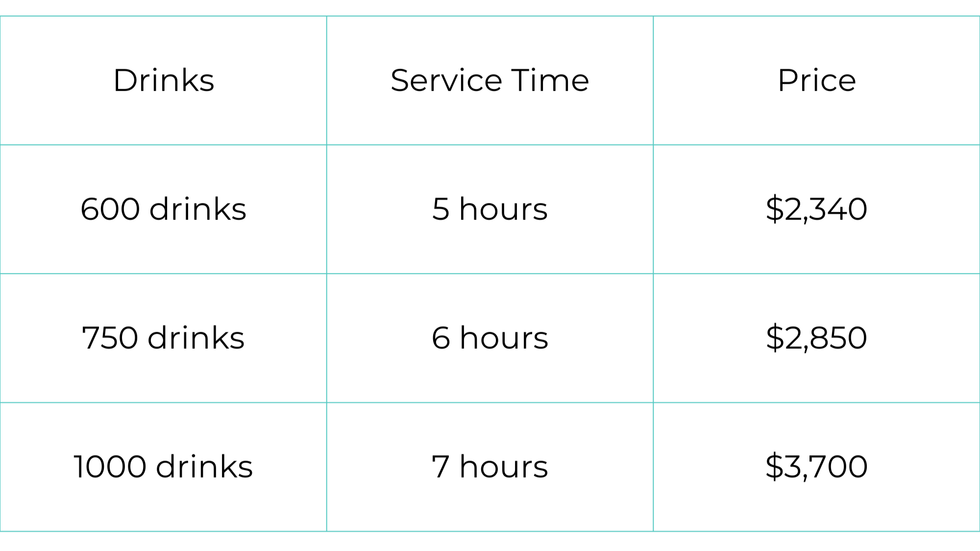 Hosting a public event or market? We also attend events as a vendor where guests purchase drinks individually.