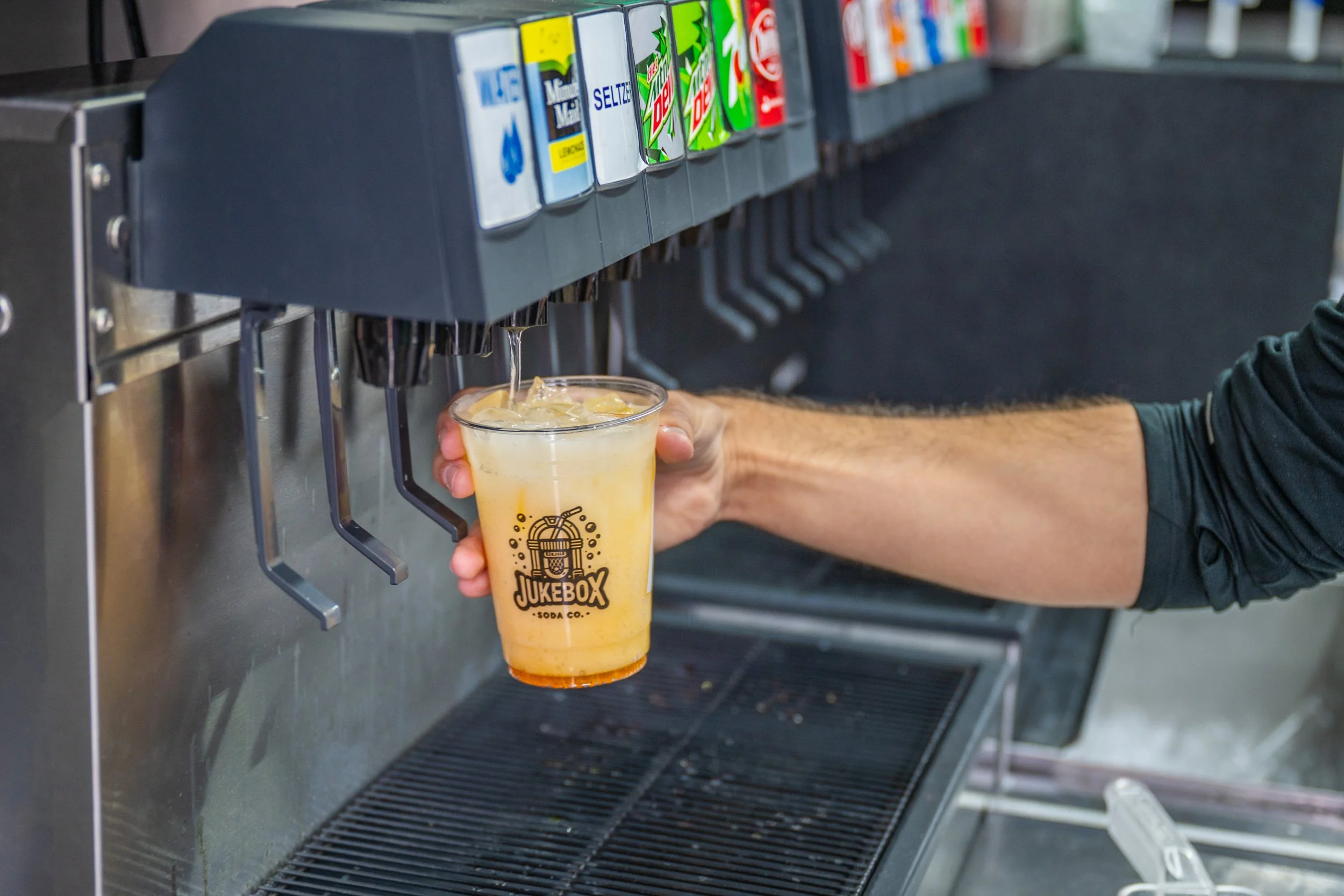 Guests choose from classic sodas, handcrafted syrups, and fresh cream blends.